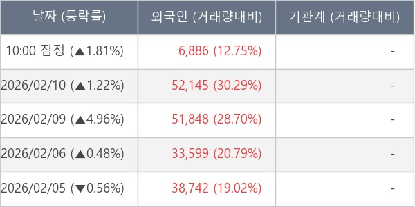 [표] 외국인ㆍ기관 순매매량 (단위 주)