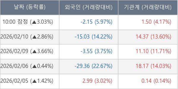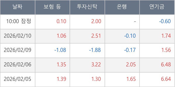 [표] 주요 기관별 순매매량 (단위 만주)