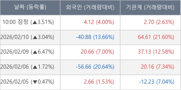 [서울=뉴스핌] 로보뉴스 = 11일 10시 15분 현재 우리금융지주(316140)는 외국인과 기관이 각각 4.12 만 주, 2.70 만 주 순매수(잠정) 하면서 전일 대비 3.51% (현재가 36,850원) 상승하고 있다.
