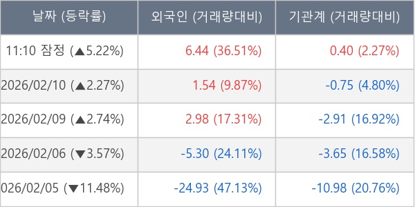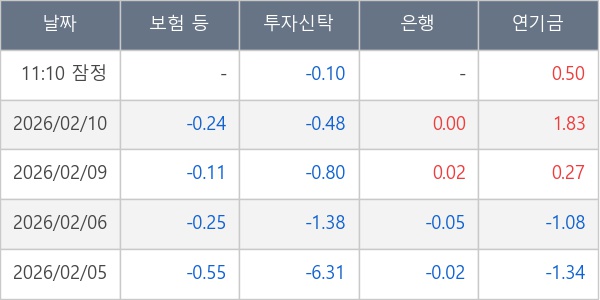 [표] 주요 기관별 순매매량 (단위 만주)