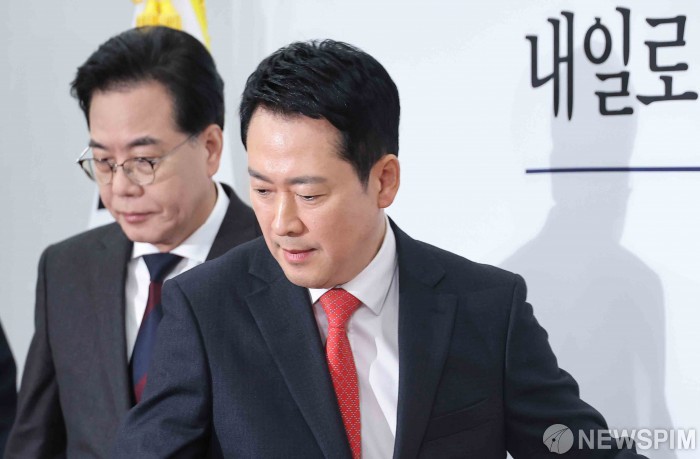 [서울=뉴스핌] 윤창빈 기자 = 장동혁 국민의힘 대표, 송언석 원내대표가 12일 오전 서울 여의도 국회에서 열린 최고위원회의에 참석하고 있다. 2026.02.12 pangbin@newspim.com