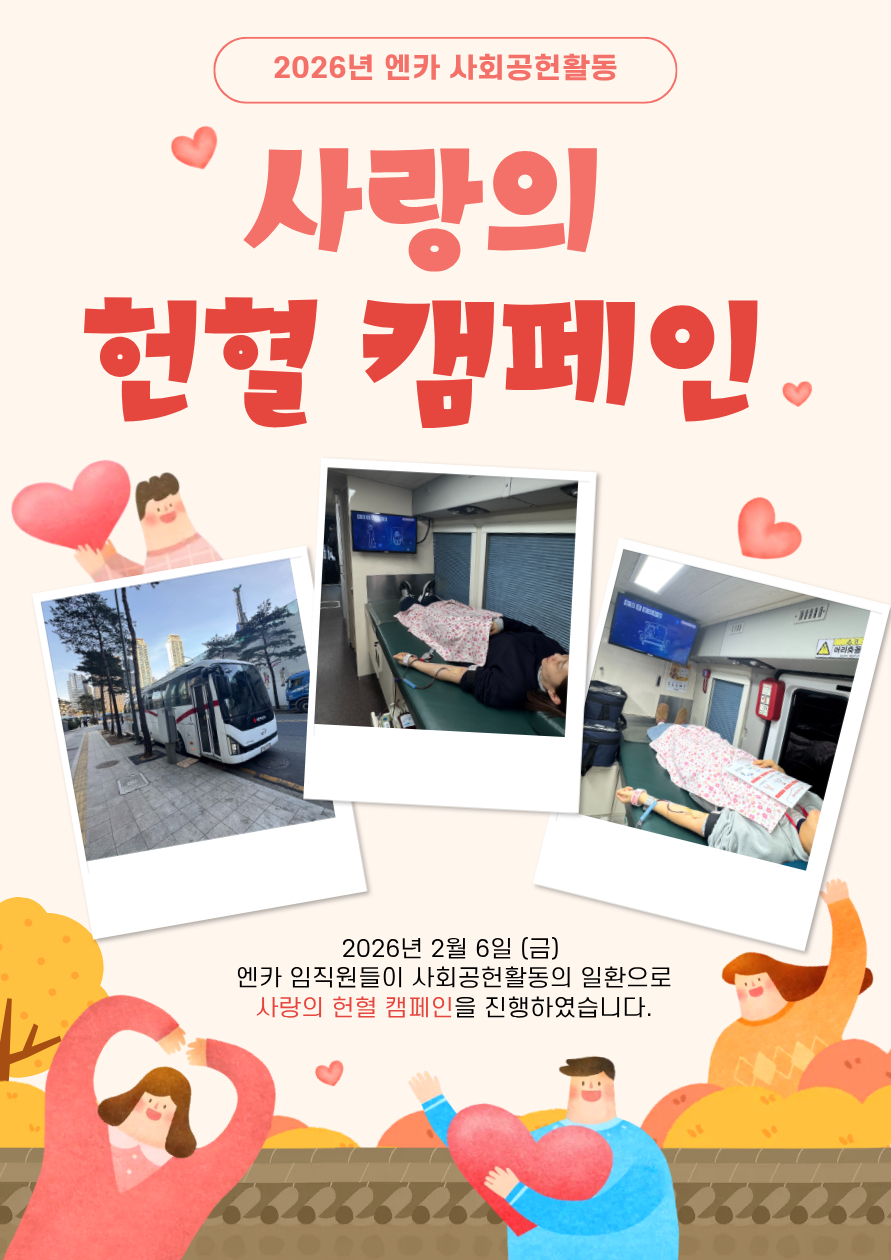 이번 헌혈 캠페인은 저출산, 고령화로 혈액 수급 불균형이 지속되는 상황 속 기업 차원의 사회적 책임을 실천하고 혈액 수급 안정화에 기여하는 한편 생명 존중 문화를 확산하기 위해 마련됐다. 엔카 임직원들은 자발적으로 캠페인에 참여해 서울 중구 본사 사옥 앞에 마련된 헌혈 버스에서 안전하게 헌혈에 동참했다.