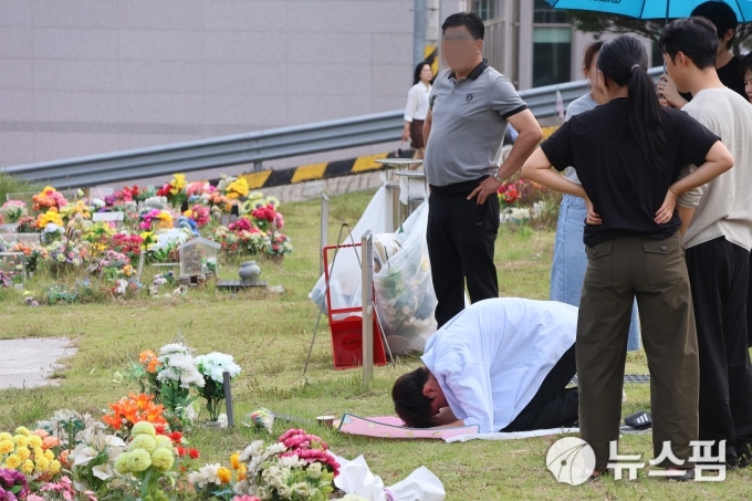 묘역을 찾은 성묘객들이 추모의 시간을 갖고 있다. [광주=뉴스핌] 박진형 기자 = 2025.10.06 bless4ya@newspim.com
