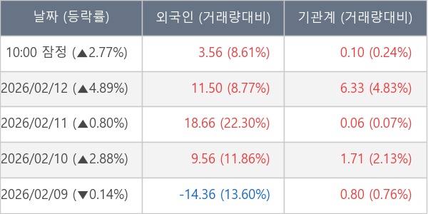 [표] 주요 기관별 순매매량 (단위 만주)
