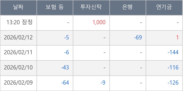 [표] 주요 기관별 순매매량 (단위 주)