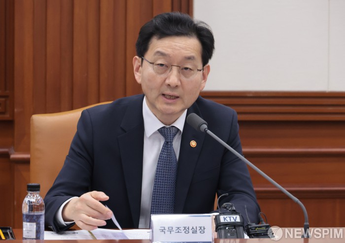 [서울=뉴스핌] 이길동 기자 = 윤창렬 국무조정실장이 13일 서울 종로구 정부서울청사에서 열린 제1차 마약류대책협의회 회의를 주재하며 모두 발언을 하고 있다.2026.02.13 gdlee@newspim.com