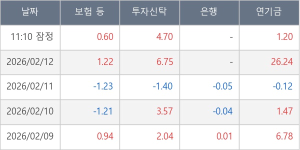 [표] 주요 기관별 순매매량 (단위 만주)