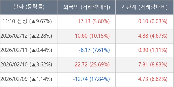 [서울=뉴스핌] 로보뉴스 = 13일 11시 30분 현재 유안타증권(003470)은 전일 대비 9.67% (현재가 5,160원) 상승했고, 기관이 최근 5일 연속 순매수(누적 18.42만 주, 잠정) 행진을 하고 있다.