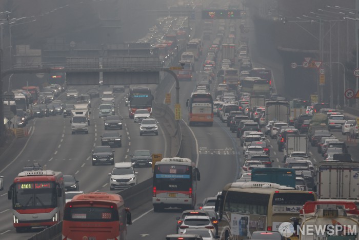 [서울=뉴스핌] 류기찬 기자 = 설 연휴를 사흘 앞둔 13일 오후 서울 서초구 잠원IC 인근 경부고속도로 하행선이 정체를 빚고 있다. 2026.02.13 ryuchan0925@newspim.com