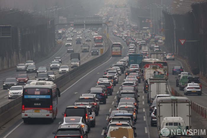 [서울=뉴스핌] 류기찬 기자 = 설 연휴를 사흘 앞둔 13일 오후 서울 서초구 잠원IC 인근 경부고속도로 하행선이 정체를 빚고 있다. 2026.02.13 ryuchan0925@newspim.com
