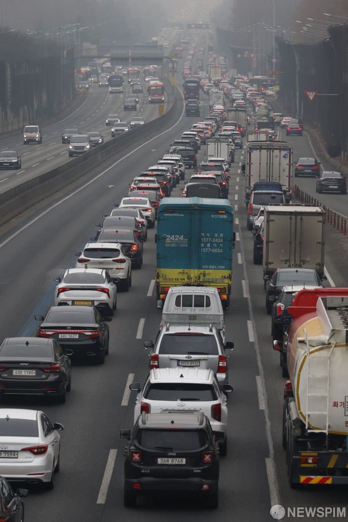 [서울=뉴스핌] 류기찬 기자 = 설 연휴를 사흘 앞둔 13일 오후 서울 서초구 잠원IC 인근 경부고속도로 하행선이 정체를 빚고 있다. 2026.02.13 ryuchan0925@newspim.com