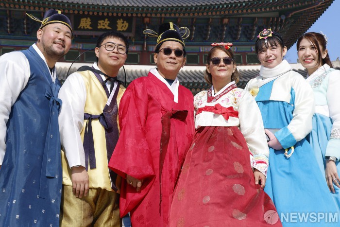 [서울=뉴스핌] 류기찬 기자 = 설 연휴를 맞아 주요 궁궐이 무료로 개방한 15일 오후 서울 종로구 경복궁을 찾은 외국인 관광객들이 기념촬영을 하고 있다. 2026.02.15 ryuchan0925@newspim.com