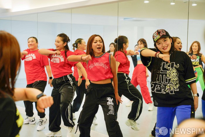 [서울=뉴스핌] 서울 강남구 역삼동 ‘공간 920’에서 지난 13일 오후 피트니스 브랜드 줌바(Zumba) 클래스가 열려 줌바 팬들이 줌바 안무를 즐기고 있다. 줌바는 살사, 힙합, 메링게, 레게톤, 아프리칸 비트, 벨리댄스, 플라멩코, 삼바 등 전 세계 다양한 스타일의 리듬과 춤을 누구나 쉽게 즐길 수 있도록 구성한 프로그램을 통해 글로벌 시장에서 가장 큰 댄스 피트니스 브랜드로 성장했다. [사진=줌바] 2026.02.15 photo@newspim.com