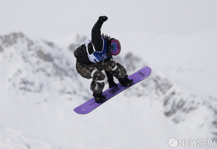 [리비뇨=로이터뉴스핌] 밀라노-코르티나 2026 동계올림픽 스노보드 여자 슬로프스타일 결승에서 대한민국 유승은이 18일 이탈리아 리비뇨 스노파크에서 경기를 펼치고 있다. 2026.02.18 photo@newspim.com