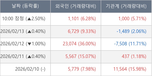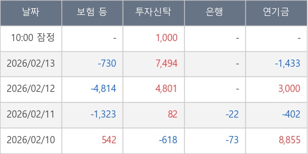 [표] 주요 기관별 순매매량 (단위 주)