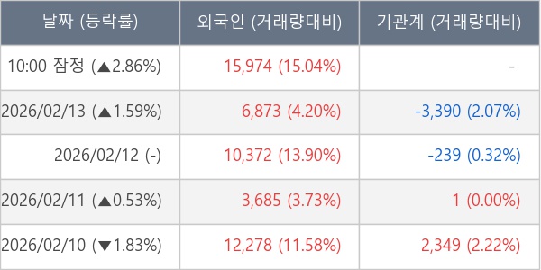 [표] 외국인ㆍ기관 순매매량 (단위 주)
