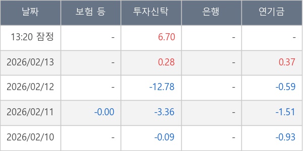 [표] 주요 기관별 순매매량 (단위 만주)