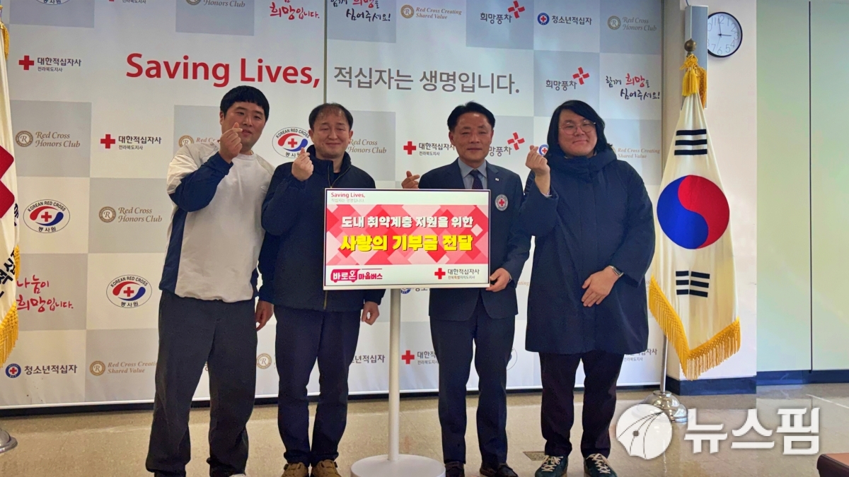 전주시설공단은 마을버스복지부 직원들이 지역사회 소외계층 지원에 써 달라며 대한적십자사 전북지사에 성금을 전달했다고 19일 밝혔다.