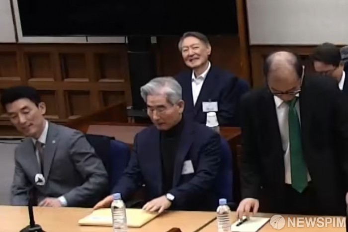 [서울=뉴스핌] 윤석열 전 대통령이 19일 오후 서울 서초구 서울중앙지방법원에서 열린 내란우두머리 혐의 1심 선고공판을 앞두고 미소를 짓고 있다. [사진=서울중앙지법] 2026.02.19 photo@newspim.com