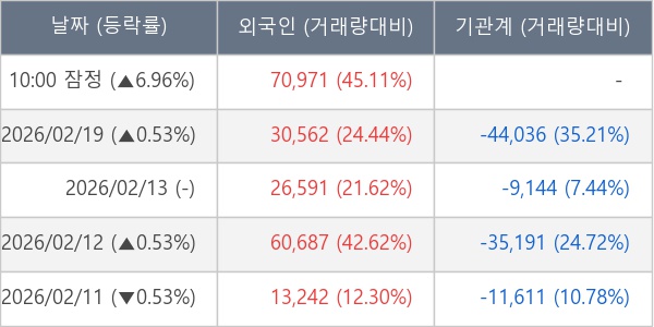 [표] 외국인ㆍ기관 순매매량 (단위 주)