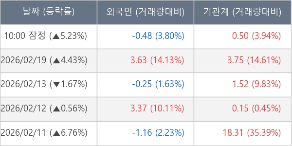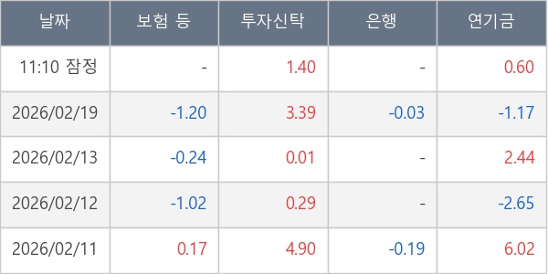 [표] 주요 기관별 순매매량 (단위 만주)