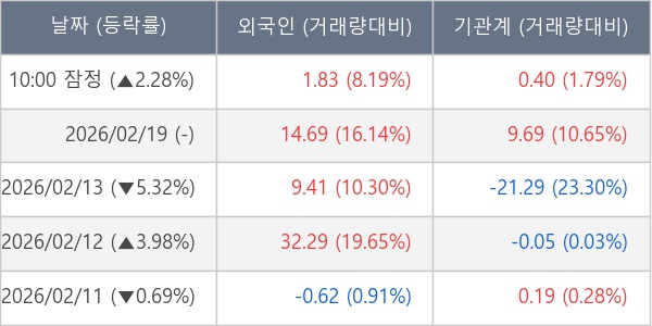 [표] 외국인ㆍ기관 순매매량 (단위 만주)