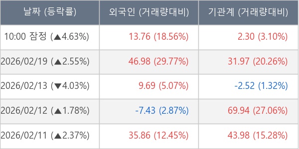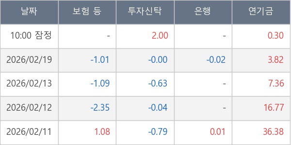 [표] 주요 기관별 순매매량 (단위 만주)