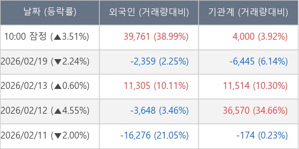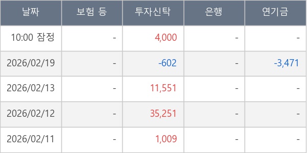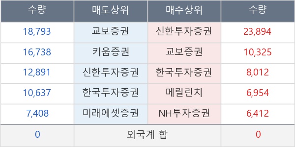 [표] 주요 기관별 순매매량 (단위 주)