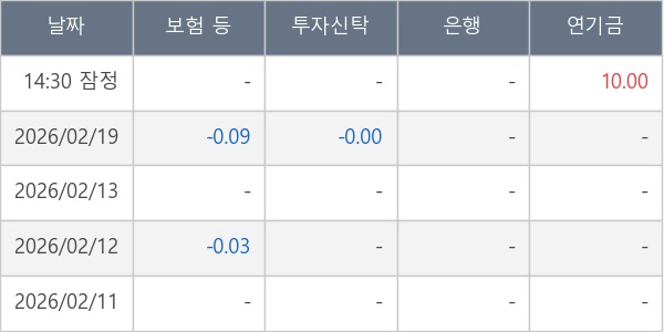 [표] 주요 기관별 순매매량 (단위 만주)