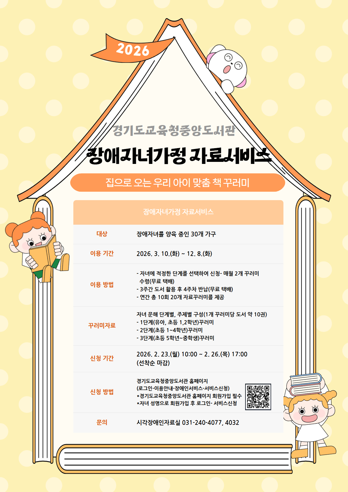 서비스 신청 기간은 23일부터 26일까지로 경기도교육청중앙도서관 누리집을 통해 선착순으로 진행된다.