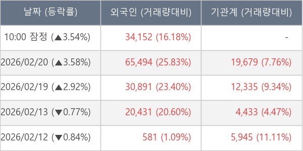 [표] 외국인ㆍ기관 순매매량 (단위 주)