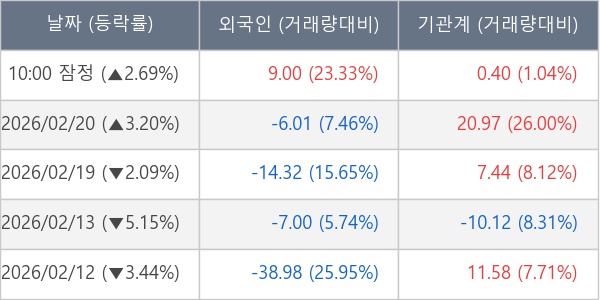 [표] 주요 기관별 순매매량 (단위 만주)