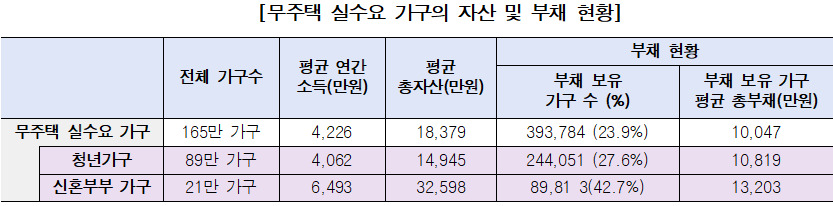 또 '무주택 실수요 가구'에 해당하면서 ▲만 19~39세 이하인 청년 가구(무주택 실수요 청년) ▲혼인 기간 7년 이내인 가구(무주택 실수요 신혼부부)를 구분해 '계층별 어려움'도 분석했다.