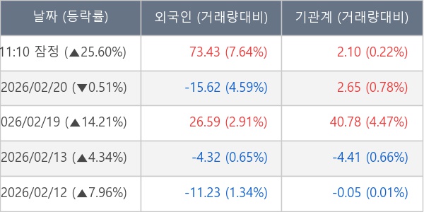 [서울=뉴스핌] 로보뉴스 = 23일 11시 30분 현재 현대바이오(048410)는 외국인과 기관이 각각 73.43 만 주, 2.10 만 주 순매수(잠정) 하면서 전일 대비 25.60% (현재가 17,170원) 상승하고 있다.
