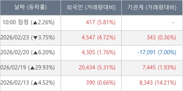 [표] 외국인ㆍ기관 순매매량 (단위 주)