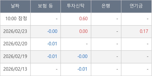 [표] 주요 기관별 순매매량 (단위 만주)