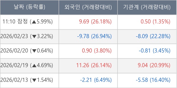 [표] 외국인ㆍ기관 순매매량 (단위 만주)