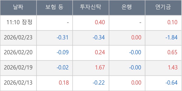※ 사모펀드 등 일부 기관의 순매매량은 표시되지 않음