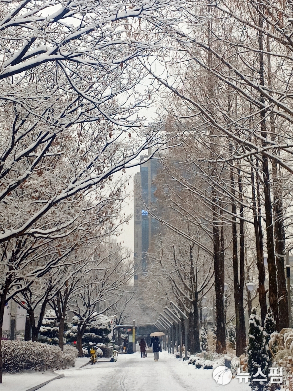 하얗게 덮힌 대전시청 앞 가로수길...오월드 8cm 적설