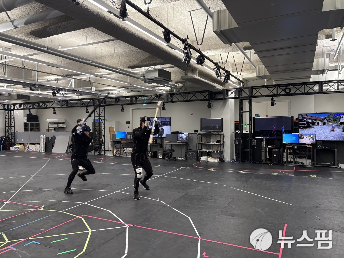 모션 캡처 스튜디오는 특수 스펀지를 깔아서 충격에 최대한 대비를 했다. 스튜디오 한편에는 다양한 실물 소품이 구비돼 있다. 검만 40여 종에 달한다. 다수의 액터가 동시에 합을 맞추는 '다인 촬영'이 핵심이다.