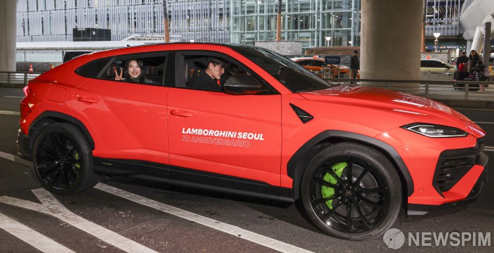 [영종도=뉴스핌] 류기찬 기자 = 2026 밀라노·코르티나담페초 동계올림픽 일정을 마친 쇼트트랙 김길리가 24일 오후 인천국제공항을 통해 귀국해 람보르기니를 타고 공항을 나서고 있다. 2026.02.24 ryuchan0925@newspim.com