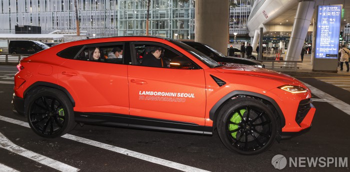 [영종도=뉴스핌] 류기찬 기자 = 2026 밀라노·코르티나담페초 동계올림픽 일정을 마친 쇼트트랙 김길리가 24일 오후 인천국제공항을 통해 귀국해 람보르기니를 타고 공항을 나서고 있다. 2026.02.24 ryuchan0925@newspim.com
