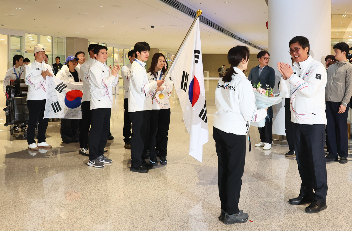 최휘영 장관, 귀국 동계올림픽 선수단 환영 및 격려