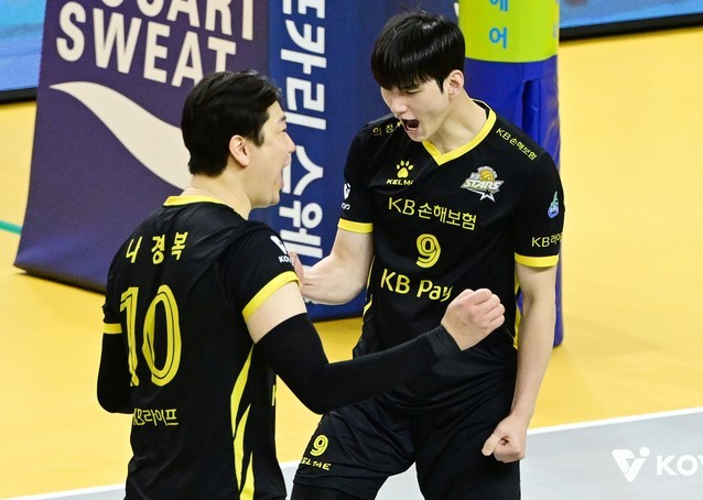 KB손해보험은 24일 의정부 경민대 기념관에서 열린 2025~2026 V리그 남자부 6라운드에서 삼성화재를 세트 스코어 3-1(25-20 18-25 25-16 25-23)로 꺾었다. 승점 3을 보탠 KB손해보험은 승점 51으로 4위 한국전력과의 격차를 5점으로 벌렸다.