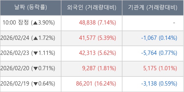 [표] 외국인ㆍ기관 순매매량 (단위 주)