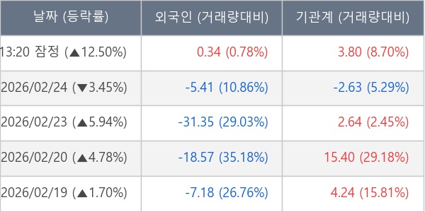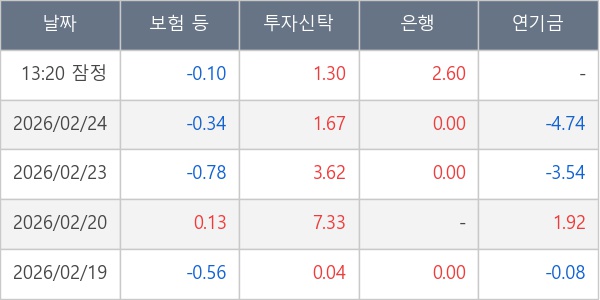 [표] 주요 기관별 순매매량 (단위 만주)