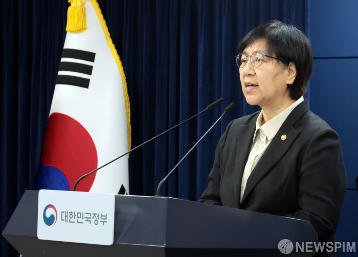 [서울=뉴스핌] 이길동 기자 = 정은경 보건복지부 장관이 25일 오전 서울 종로구 정부서울청사에서 응급환자 이송체계 혁신 시범사업 관련 브리핑을 하고 있다.2026.02.25gdlee@newspim.com