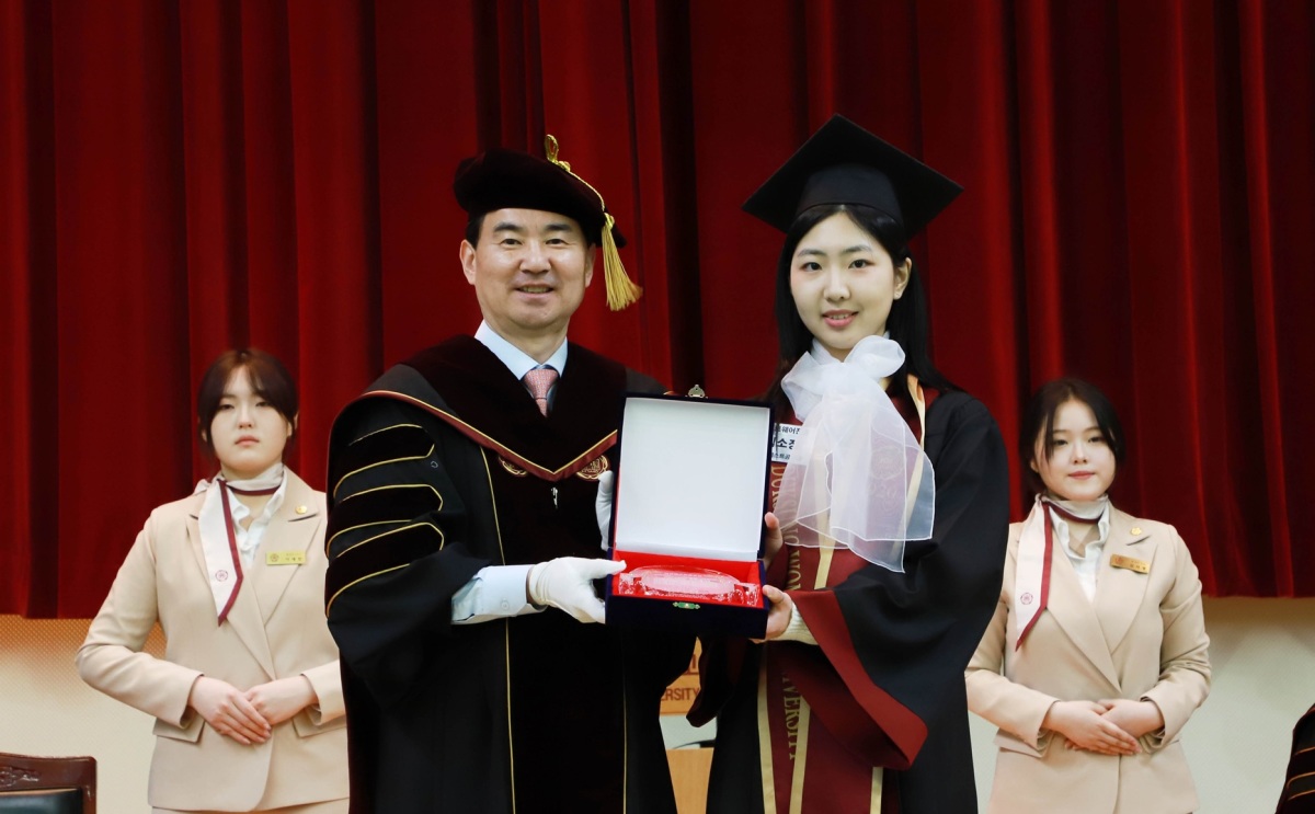 졸업생 중 성적이 가장 우수한 학생에게 수여되는 이사장상은 문헌정보학전공 황수빈 학생이, 총장상은 약학과 박영서 학생이 받았다.