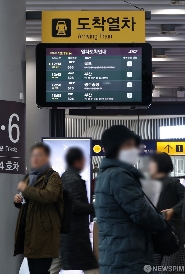[서울=뉴스핌] 김현우 기자 = 수서발KTX-서울역SRT 시범 교차운행 시작된 25일 오후 서울 강남구 수서역 전광판에 KTX 열차 안내문이 나오고 있다. KTX는 수서역∼부산역을, SRT는 서울역∼부산역을 매일 각 1회 왕복 운행한다. 2026.02.25 khwphoto@newspim.com