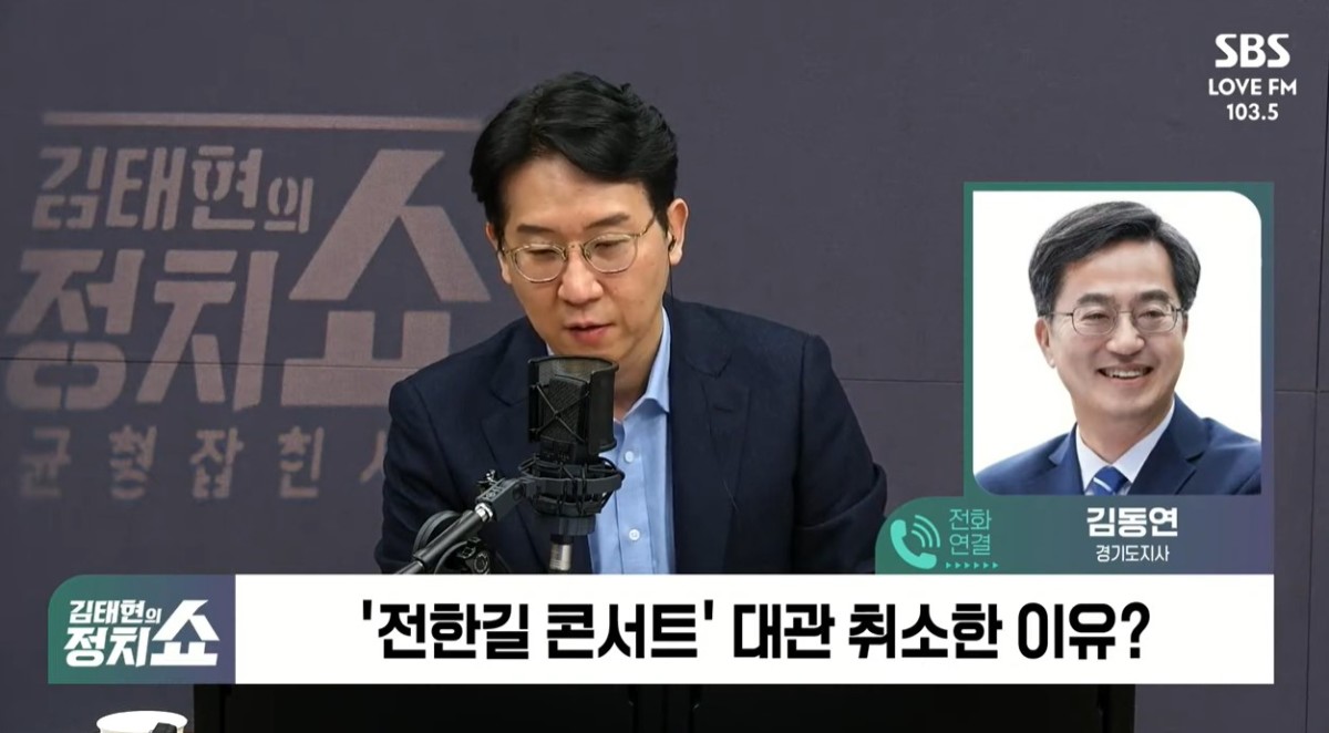 김 지사는 26일 SBS 라디오 '김태현의 정치쇼' 전화 인터뷰를 통해 최근 논란이 된 전한길 씨의 킨텍스 콘서트 대관 취소와 부동산 대책, 그리고 향후 정치 행보에 대한 입장을 가감 없이 밝혔다.